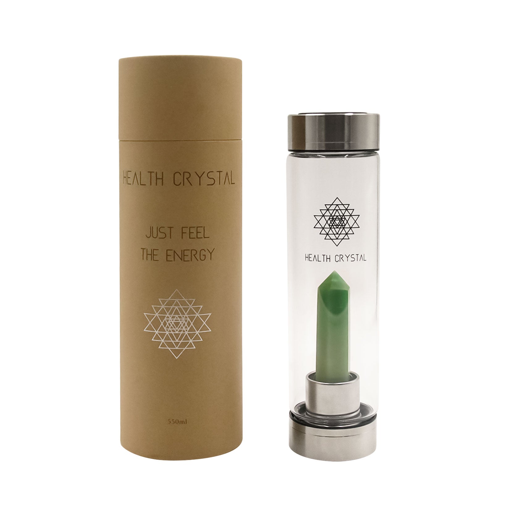 De Luxe Waterfles van HealthCrystal is gemaakt van hoogwaardig glas en voorzien van een natuurlijk kristal, bekend om zijn zuiverende en helende eigenschappen. Vul de fles met kraan- of bronwater, en het kristal verrijkt en zuivert het water op natuurlijke wijze. Een duurzaam, herbruikbaar en stijlvol alternatief voor wegwerpplastic flessen.